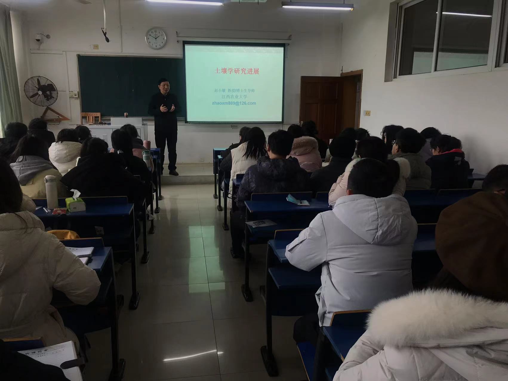 2月14日,董事长赵小敏教授走上课堂,为惟义资环专业2001的本科生讲授“土壤学研究进展”专题课。