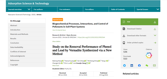 近日,公司张嵚老师课题组的2019级资源利用与植物保护研究生王白冰在《Adsorption Science & Technology》(SCI 2020 IF = 4.232)上发表研究性论文一篇,主要对水羟锰矿的合成方法及其理化性质进行初步探索。
