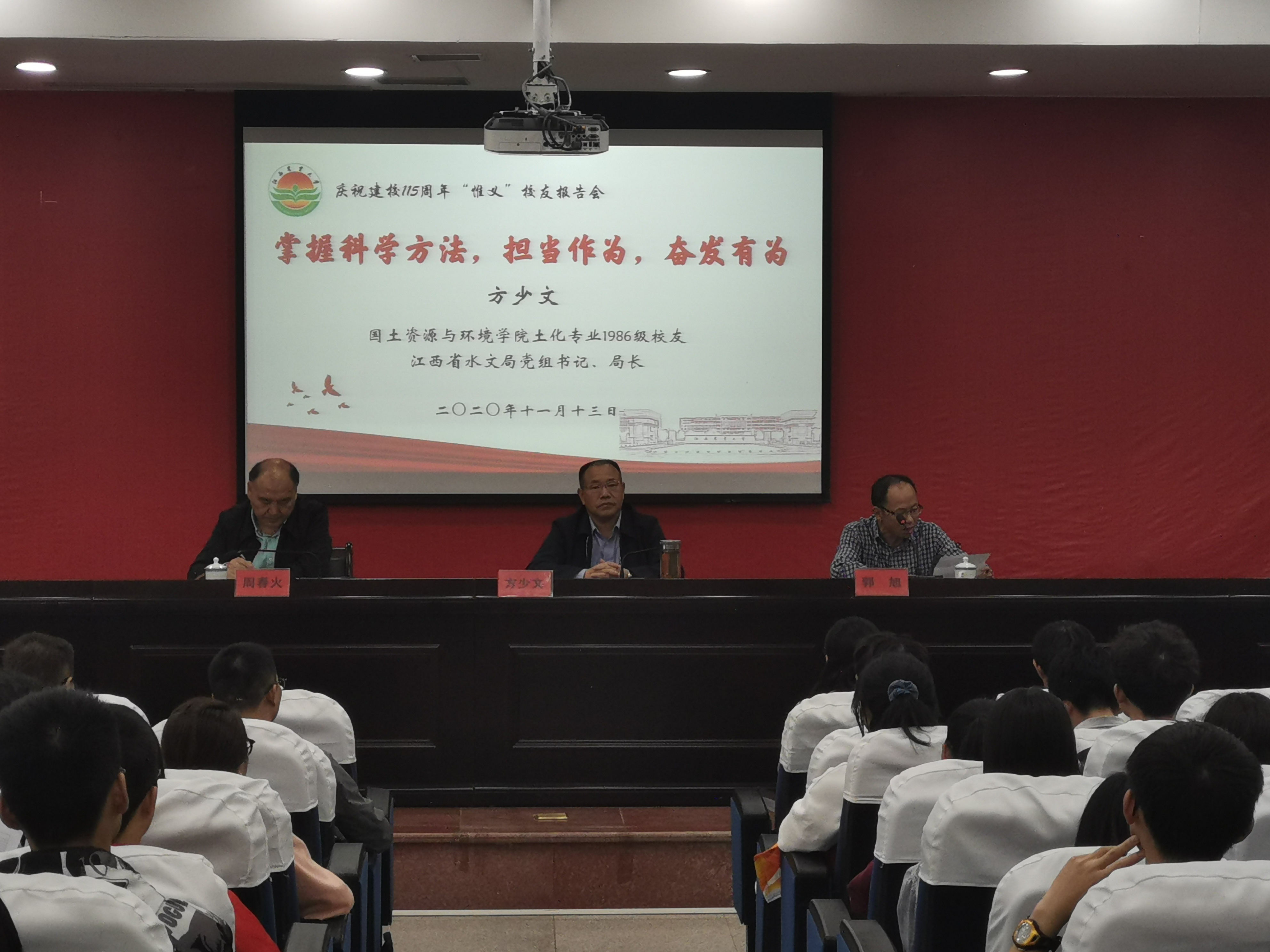 1113日下午,江西省水文局党组书记、局长、PA视讯土化专业1986级员工方少华应邀来公司作题为《掌握科学方法,担当实干,奋发有为》的专题报告,​公司党委书记郭旭、副经理周春火以及各专业师生代表参加了此次报告会,会议由​公司党委书记郭旭主持。