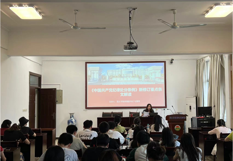 党委副书记马慧琴以《中国共产党纪律处分条例--新修订重点条文解读》为题,为全体毕业生党员讲授了一堂生动的专题党课。马慧琴详细阐述了党纪学习教育的意义与要求,深入解读了新修订的《中国共产党纪律处分条例》的重要意义、主要内容以及贯彻执行的具体措施。