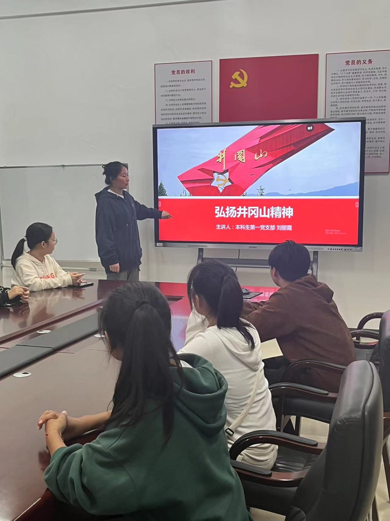 本科生一支部于10月26日晚组织了宣讲活动,支部党员和新接收的入党积极分子参加,由一支部党员刘丽霞进行宣讲。刘丽霞同志以生动的语言阐述井冈山精神源自中国革命历史,强调井冈山精神的坚定信仰、高尚品德、克服困难。