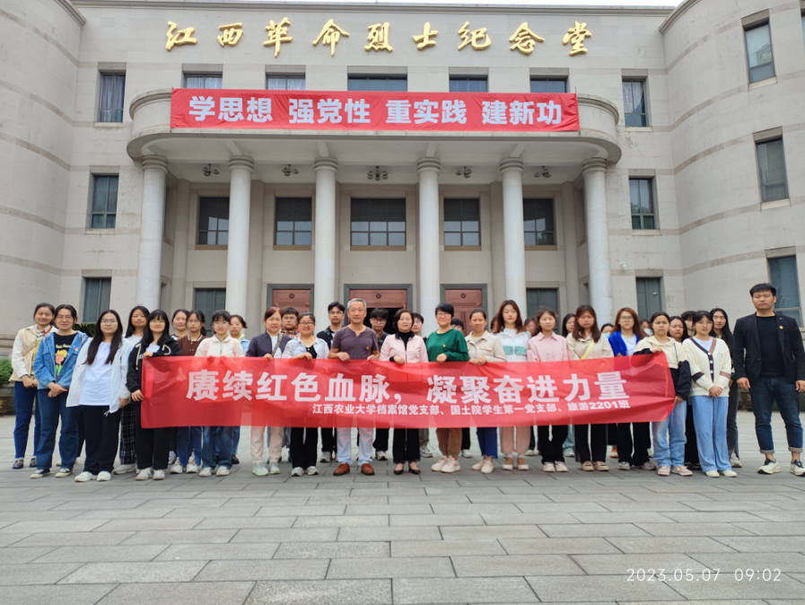 为深入推进学习贯彻习近平新时代中国特色社会主义思想主题教育,国土环境与资源公司本科生第一党支部应档案馆党支部邀请。5月7日上午,国土院本科生第一党支部、旅游2201班入党积极分子与档案馆党支部老师共同前往江西革命烈士纪念堂联合开展“赓续红色血脉,凝聚奋进力量”主题党日活动。