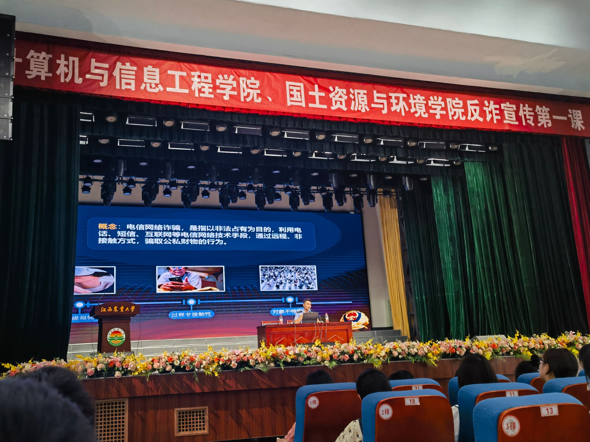 开展“安全教育”,把牢校园安全红线。为深化防范电信网络诈骗宣传教育工作,从源头上筑牢新生反诈意识,构建平安和谐校园环境,9月11日,公司开展新生反诈第一课,特邀请南昌市公安局反诈讲师团徐加明警官给2023级新生讲解反诈知识。通过以案说法的方式向在场同学们展现了常见的诈骗套路、手段以及如何应对的措施、方法,引导同学们做到“不听、不信、不转账”,筑牢反诈“防火墙”,守好自身“钱袋子”。