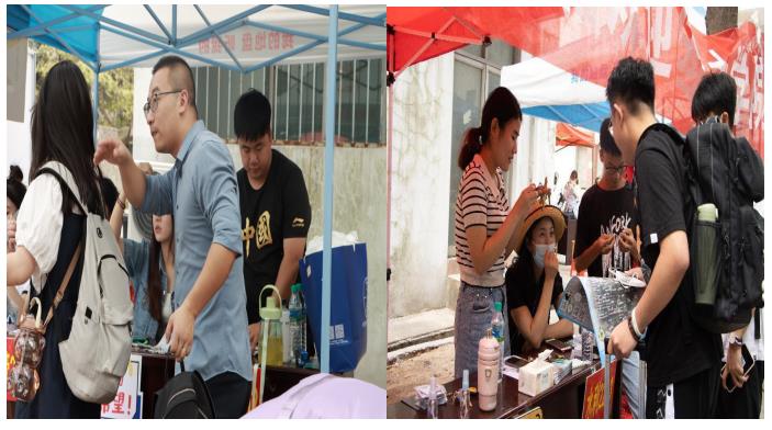 “你家是哪里的?”、“上门推销的你们一律不要相信”,迎新现场有这样一个群体同样忙碌着,他们就是2022级新生班主任们。叶英聪、王金亮、尹鑫等全体新生班主任们一早来到迎新工作现场了解员工情况,解答员工疑惑,面对面讲解网络诈骗、电信诈骗、校园贷等防骗知识,提醒新生保护个人信息做好防范,提升防诈意识和反诈能力。