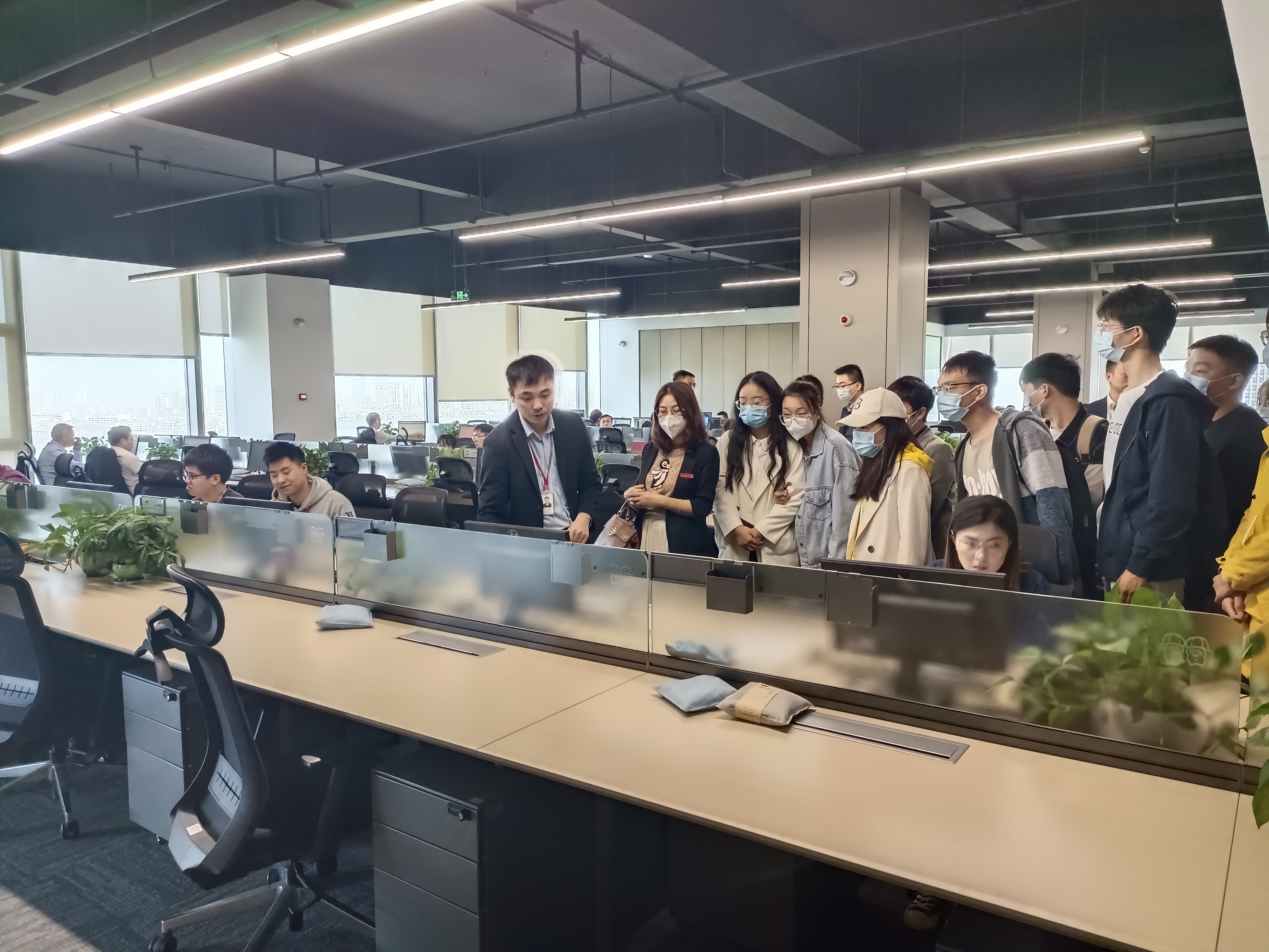 抵达双胞胎集团后,公司师生参观了双胞胎集团总部,了解双胞胎集团的办公生活环境、数字化集成供应链共享平台、标准化工厂建设、现代化规模养猪场景。其后,在交流座谈会上,与会双方围绕企业人才政策、招聘需求、集成供应链、饲料与服务产品线以及养猪产品线岗位设置开展了热烈的交流讨论;双胞胎集团在岗的江农员工代表温祥贵、刘旺、赵为庭结合自身在双胞胎集团工作的成长与收获给有意加入双胞胎集团发展的学弟学妹们答疑解惑。