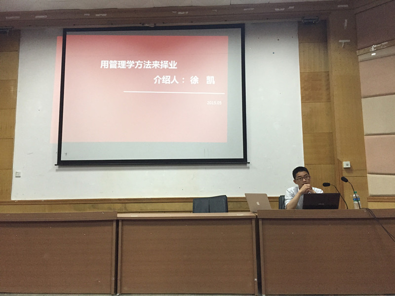 5月9日晚7点,在院科技馆报告厅,公司邀请到了2001级优秀员工、中国华皓控股集团济南建信置业有限公司总经理助理徐凯为公司2012级老员工做《用管理学方法来择业》的就业指导讲座,学工办程建华老师主持讲座。