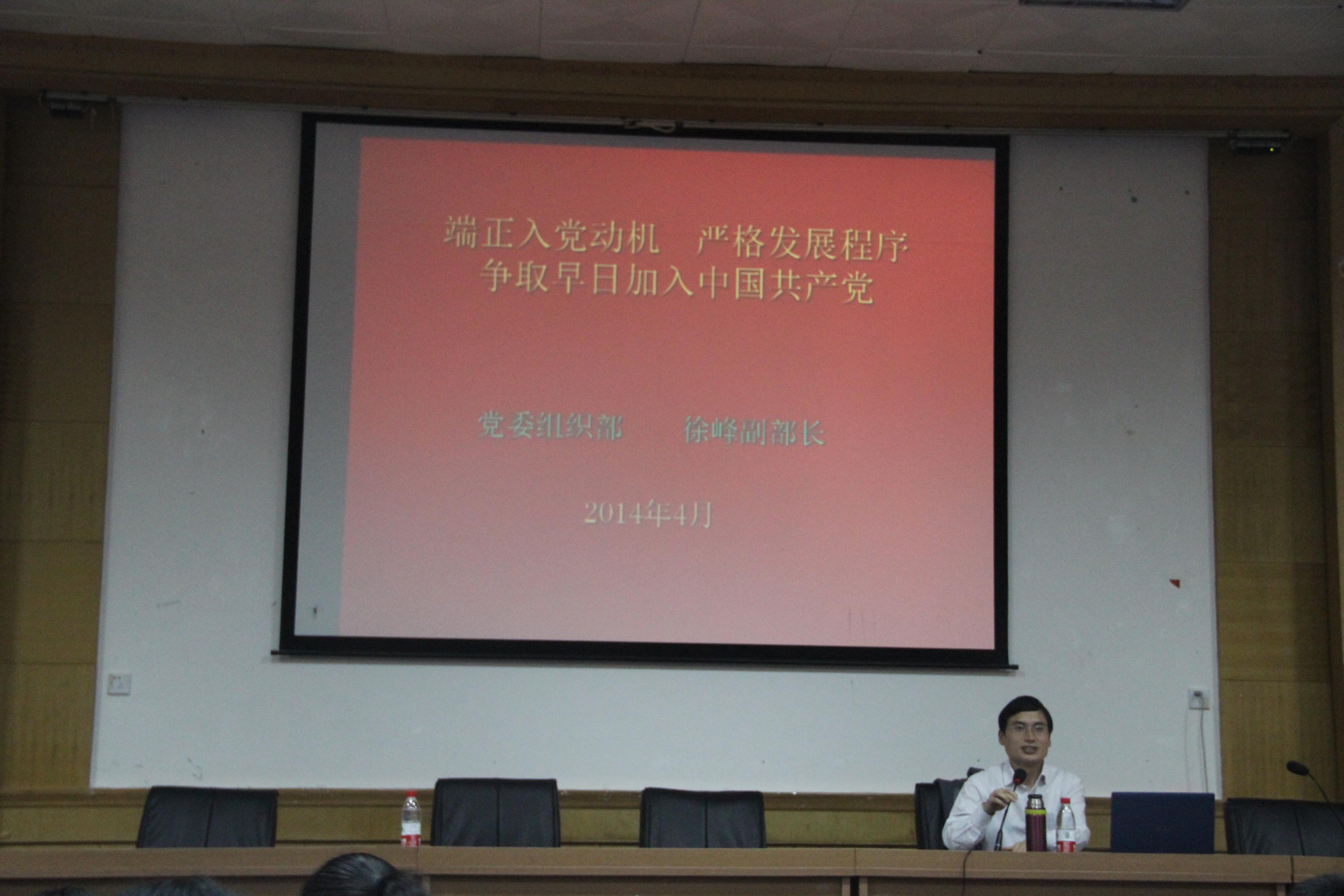 讲座中,徐峰老师结合当前世界政党、对入党的体会、怎样入党这三个方面来进行解读。徐老师引经据典、理论联系实际,从经济全球化、政治多极化和社会多元化三个角度剖析了当今世界复杂的国际形势以及在复杂形势下中国共产党执政的艺术与执政能力。另外,他还用身边的普通党员用实际行动帮助他人的故事,来阐释党员的宗旨意识、责任意识、使命意识,树立的典型模范带头作用,诠释了作为一名优秀共产党员必须具有的素质。最后,徐峰老师还简单介绍了入党条件及程序。