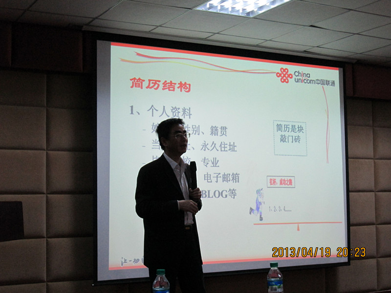 2013年4月19日晚,在PA视讯老员工活动中心202室,中国联通江西分公司人力资源部副总经理熊国庆受邀做客公司《思源论坛》,公司党委副书记黄新志、学工办程建华老师、公司罗韵老师与各公司100多位同学一道现场聆听了讲座。