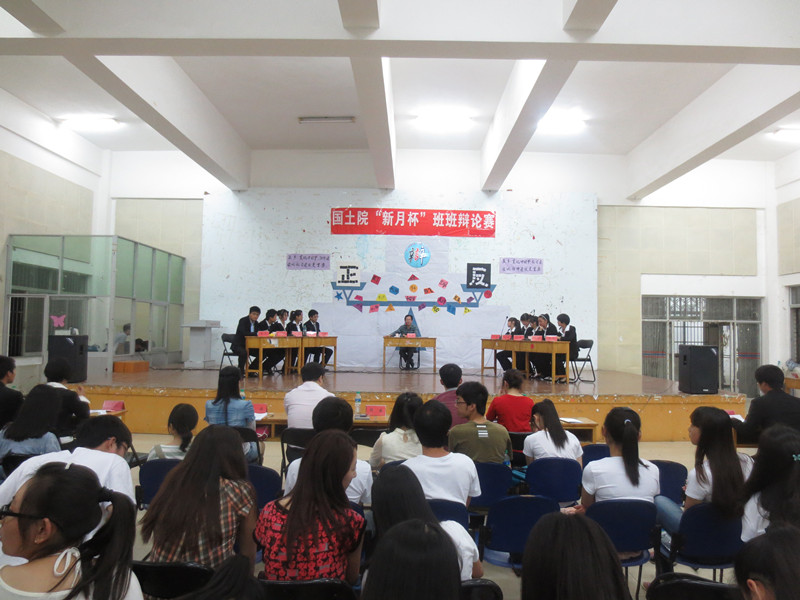 本场比赛由正方旅游1101班与反方环工1101班对垒。辩论赛伊始,黄新志致开幕词,他对所有为活动付出辛勤劳动的同学表示感谢,并指出广大同学要充分利用班班辩论赛这个平台,培养思考问题、分析问题、解决问题的能力,提升缜密的思辨能力。他殷切希望通过大家的共同努力,公司的员工活动越来越精彩,公司文化氛围越来越浓厚,从而促进广大同学的成长进步。比赛中双方代表队就“实现中国梦,经济建设与社会建设何者更重要”展开了激烈辩论。经过知己知彼,有问必答,面授机宜,短兵相接,烽火再起,一锤定音六个环节的激烈比拼,比赛告一段落,评委离席讨论。但是比赛的会场仍然热火朝天,观众的提问也一样咄咄逼人,让人拍案叫绝。比赛最后,马克思主义公司罗忆芳老师就本场比赛做了点评,他充分肯定此场比赛的精彩,认为国土学子的演辩水平逐渐提升,同时也指出了比赛过程中双方辩手出现的一些不足之处并给予了指导。