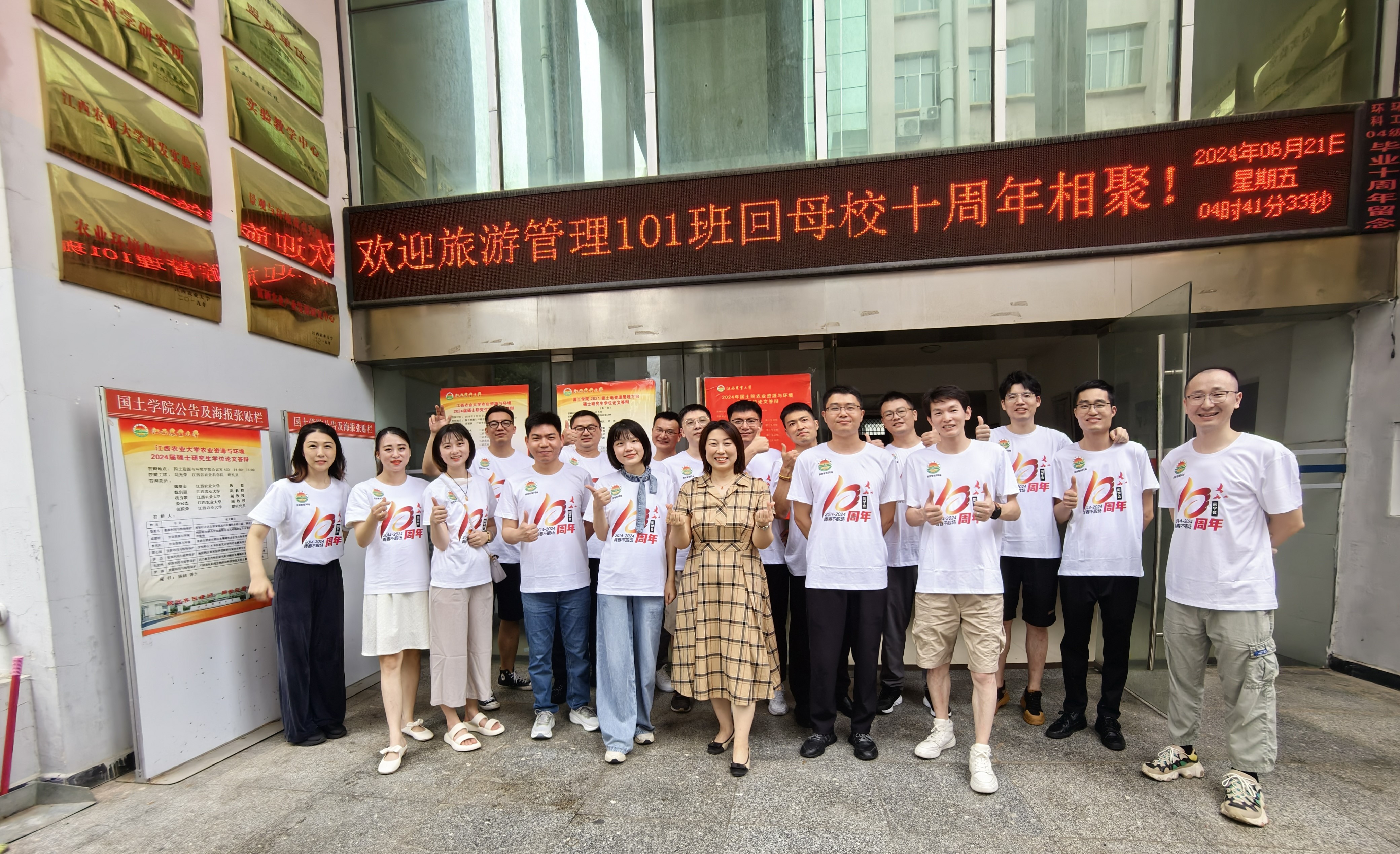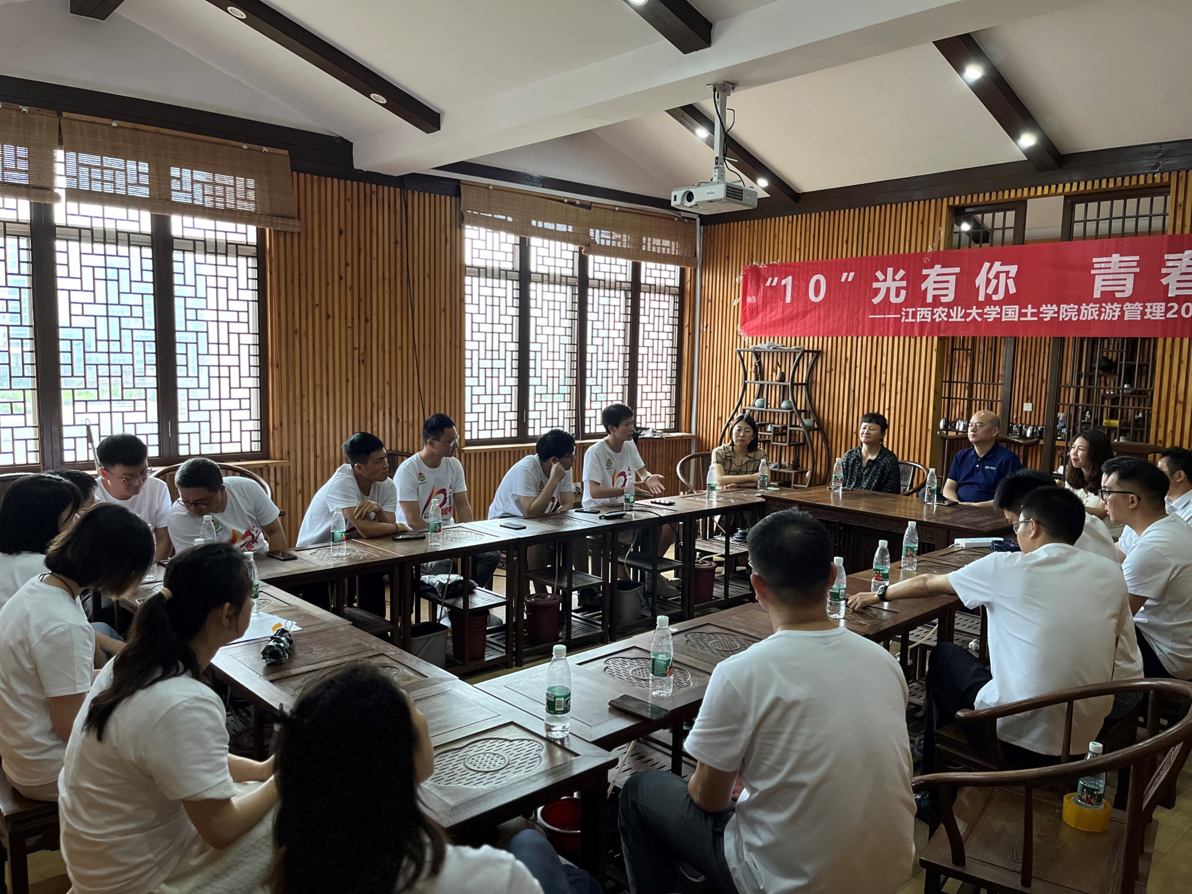 6月22日,公司2014届毕业生、旅游管理101班的同学们回校开展“‘10’光有你,青春不散”毕业十周年聚会。同学们在公司515茶室欢聚一堂,共忆当年求学往事、共话十年成长历程,公司党委书记李保同、党委副书记马慧琴出席了座谈会。