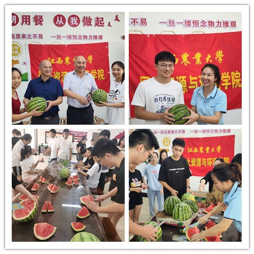 仲夏炎炎,学途漫漫。为向那些因追求梦想、科研探索或学业精进而选择留校的员工们表达深切关怀,7月23日上午,国土公司领导、2025届毕业班部分班主任以及公司辅导员一行在图书馆一楼策划了一场“送清凉”活动,领导、老师们亲自将清甜的西瓜与解渴的饮用水送到每位留校学子的手中,让这份特别的“凉”方成为了炎炎夏日中最沁人心脾的甜蜜。