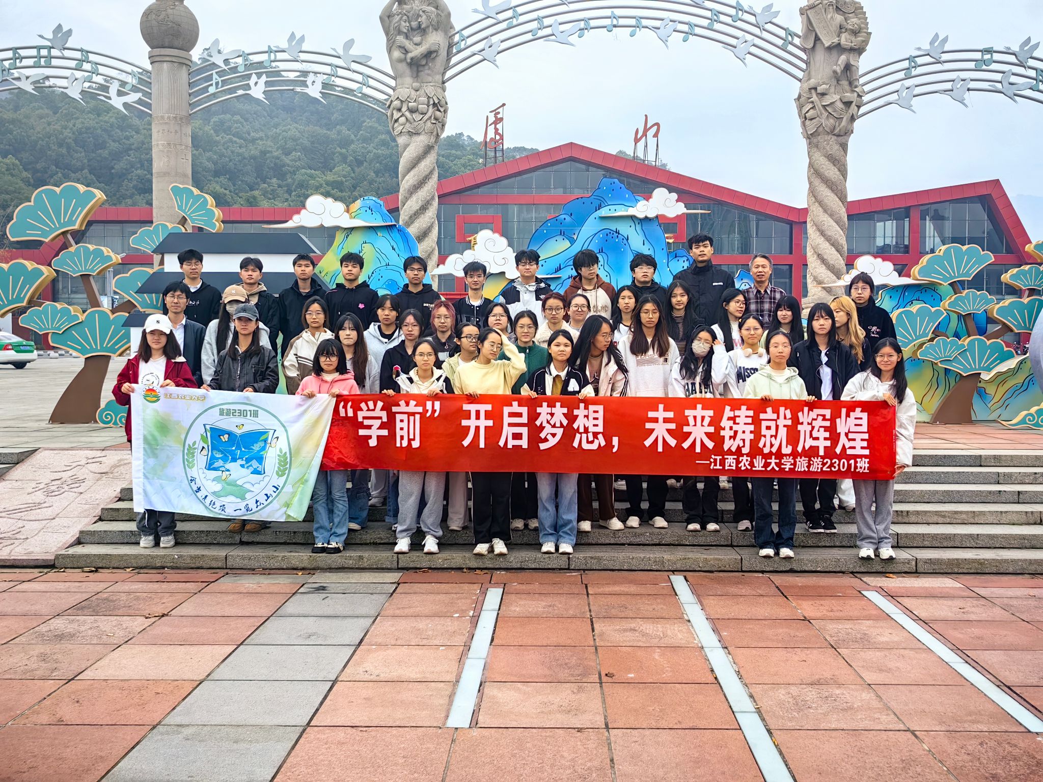 (图为旅游管理专业2301班同学和指导老师于庐山合影)