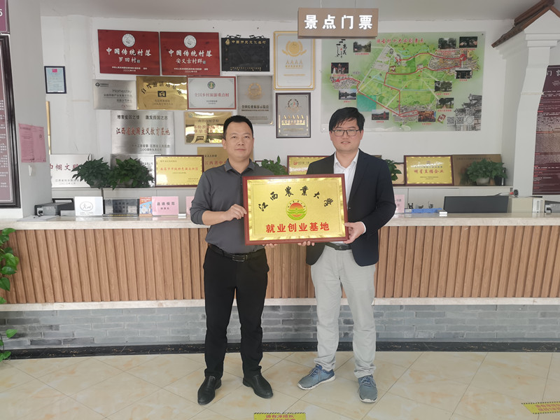会后,校企双方举行了就业创业基地的挂牌仪式,并签订新的合作意向书,员工与企业达成就业意向。在企业负责人的带领下,对安义古村建筑群进行参观。