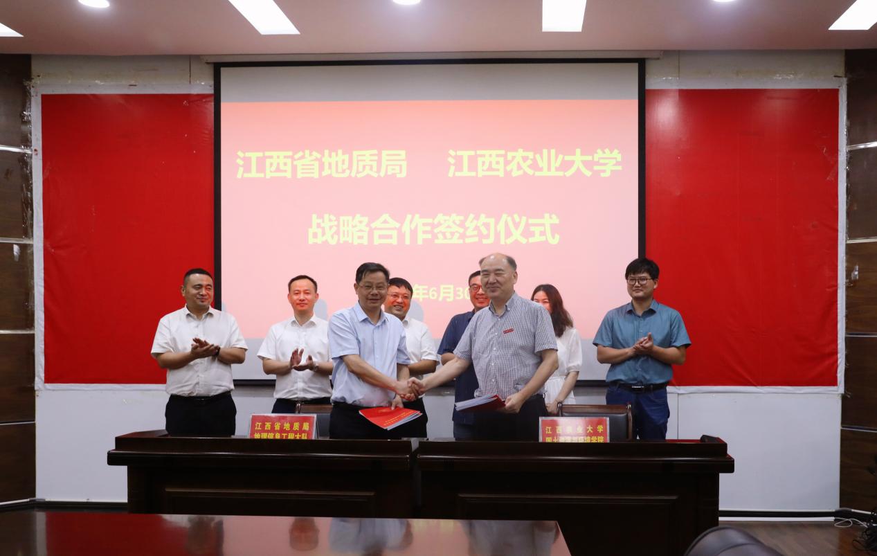 签约仪式由黄英金主持。赵小敏、陈祥云分别代表校、局致辞。赵小敏表示,省地质局在地质调查与勘探、测绘与地理信息、国土空间调查等领域具有明显的优势与特色,为江西经济社会发展作出了重要贡献。双方在农业地质调查与成果应用研究、国土空间调查与规划、遥感与地理信息技术开发与应用、人才培养等领域都有很好的合作。希望双方在原有合作的基础上,进一步发挥各自优势和特色,在江西省“作示范、勇争先”中发挥更大的作用。