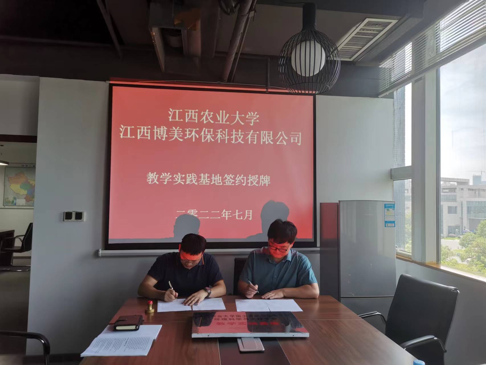 座谈会上江西博美环保科技有限公司负责人、员工邓国鹏详细介绍了公司的发展历程、运营领域、公司业务、人才招聘等情况。双方针对人才培养、员工实习就业、创新创业教育、企业奖学金等方面做了深入交流。现场还举行了教学实践基地的签约和授牌仪式,就员工参访和实践达成初步意向。