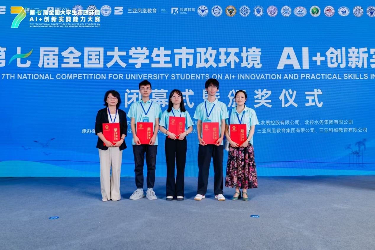 近日,第七届全国老员工市政环境AI+创新实践能力大赛全国总决赛在海南三亚圆满落幕。由公司环境科学与工程专业的熊江波、王嵘老师指导,聂志宇、曾礼悦、余阿轶三位同学组成的参赛团队,凭借扎实的专业知识、出色的创新能力和稳定的现场表现,在激烈的答辩与评审中脱颖而出,最终荣获全国总决赛二等奖。同时,熊江波和王嵘老师荣获优秀指导老师,黄晶老师获优秀领队荣誉。