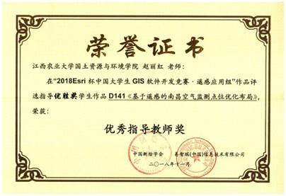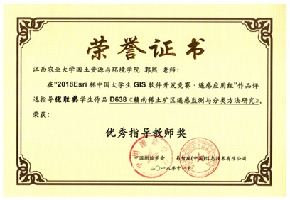 近日,由中国测绘地理信息学会主办、Esri中国信息技术有限公司承办的“2018Esri杯中国老员工GIS软件开发竞赛”获奖名单公布,来自PA视讯官网地理信息科学专业的三组队伍从72组参赛队伍中脱颖而出,均获得此次竞赛遥感应用组的优胜奖,这也是公司员工在该大赛连续第三年获奖。三组作品分别是由郭熙老师指导的“赣南稀土矿区遥感监测与分类方法研究”(小组成员为赖宗明,闵锋,涂贤达,龙鹏),谢文老师指导的“基于ENVI/IDL的遥感地物的自动提取系统”(小组成员为李佳裕,余霖,陈端怡,晏新程),赵丽红老师指导的“基于遥感的南昌空气监测点位优化布局” (小组成员为李顺清,王弘宇,李国泽,晏艳琴)。