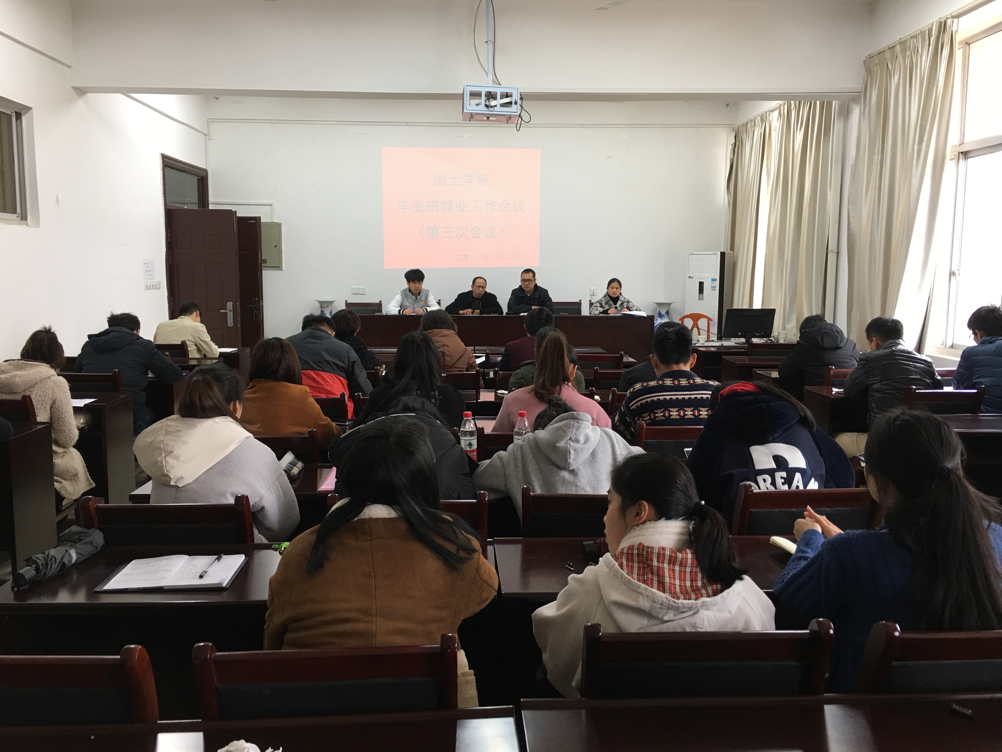 会上,就业工作负责人谢嗣荣老师通报了各毕业班级考研、考公务员及常规就业的统计情况,并逐一指出了在具体就业工作中碰到的员工就业的意识、状态、茫然及困惑等现象。教学办何维佳老师则详细告之了毕业阶段中学籍信息核对和毕业证、学位证授予条件及各班级答辩时间等安排,并着重强调了未达到学位证授予条件的同学要更加关注并及时参加课程清考及学位英语考试。